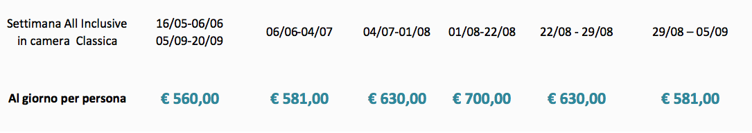 Prezzi validi per prenotazioni fino al 31/01/2026
